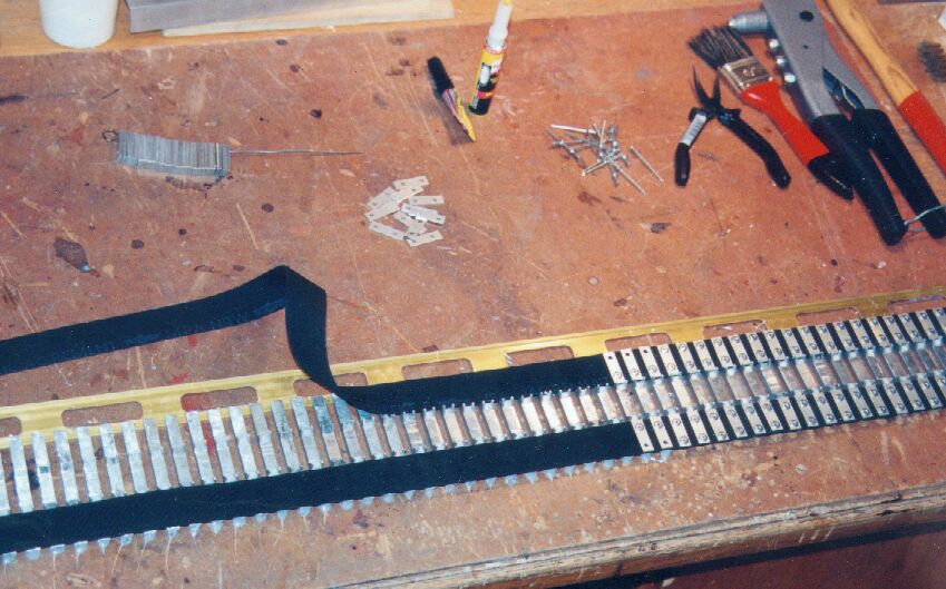 Falls ich mich noch einmal mit dem Kettenbau befasse, werde ich versuchen, auf das Verkleben zu verzichten. Wenn die Stege und die Gegenplatten mit einer exakten Leere gebohrt - und die Bänder mit einer kleinen Lochpfeife präzise gestanzt werden, sollte das eigentlich ganz gut gelingen.